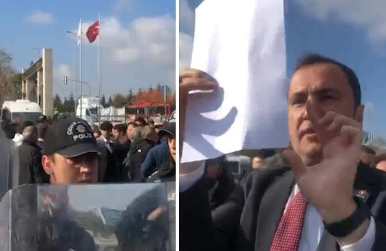 Çevik kuvvet, AYM önüne yürümek isteyen sendika yöneticileri ve eğitim emekçilerini kalkanlarla zor kullanarak bölgeden uzaklaştırmaya çalıştı.