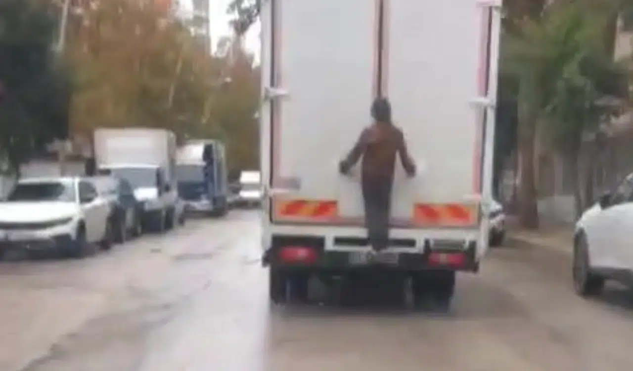 Kimliği belirlenemeyen çocuklardan biri seyir halindeki bir kamyonun arkasına, diğeri ise bir minibüsün arka kısmına asılarak tehlikeli bir şekilde ilerlemeye başladı. Bu tehlikeli yolculuk, diğer sürücüler tarafından cep telefonu kamerasıyla kaydedildi.