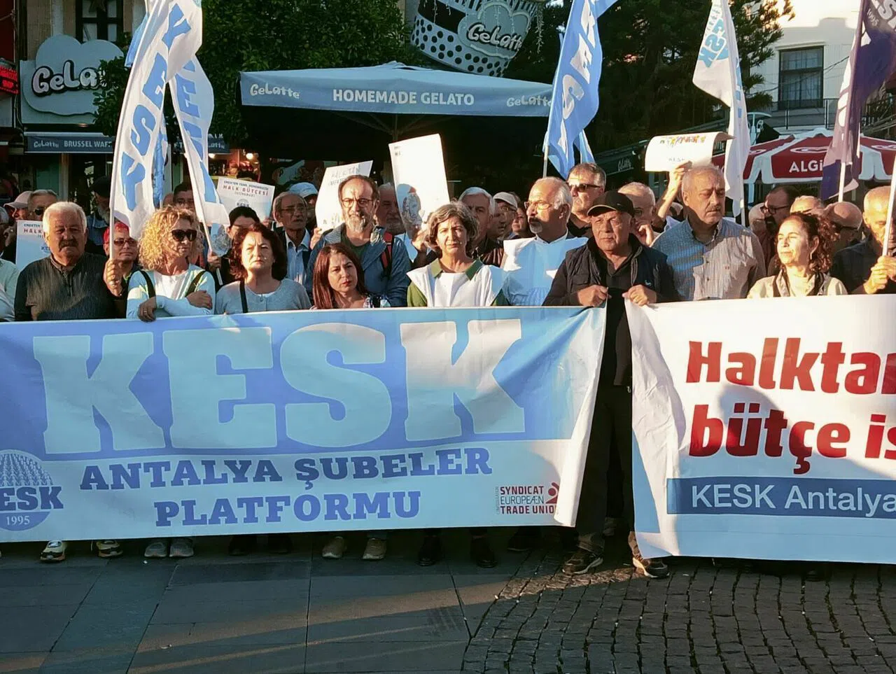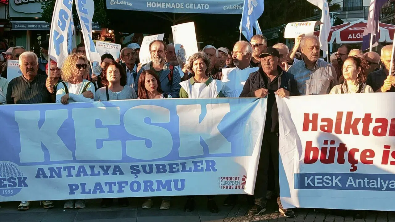 Attalos Meydanı’nda toplanan Kamu Emekçileri Sendikaları Konfederasyonu Antalya Şubeler Platformu üyeleri, AKP iktidarına seslendi. Ortak açıklamayı okuyan Döne Gevher Derin, “Emeği ile geçinen kesimler olarak, halk olarak her geçen gün daha fazla yoksullaşıyoruz. Daha fazla güvencesiz hale getiriliyoruz. Ülkeyi yönetenler ise yıllardır anlattıkları masallara yenilerini eklemeye devam ediyor. Yıllarca “2023’te kişi başına milli gelir 25 bin dolar olacak, işsizlik yüzde 5’e, enflasyon tek basamaklı rakamlara inecek. Türkiye dünyada ilk 10 ekonomi arasına girecek” masalını pazarladılar” dedi.
