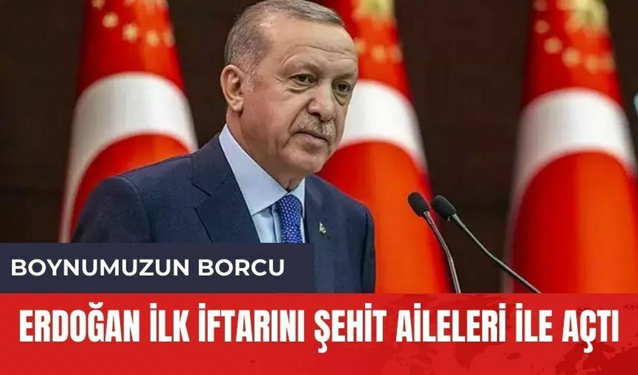Cumhurbaşkanı Recep Tayyip Erdoğan, Cumhurbaşkanlığı Külliyesi’nde Ramazan ayının ilk iftarında şehit aileleriyle bir araya geldi. İftar sonrası açıklamalarda bulunan Cumhurbaşkanı Erdoğan, “Başı rahmet, ortası mağfiret, sonu ebedi azaptan kurtuluş olan mübarek Ramazan-ı Şerifi'nizi canı gönülden tebrik ediyorum. Her Ramazan'da olduğu gibi bu yıl da ilk iftarımızı şehit yakınlarımızla yapmak istedik. Ve zengin bir sofrada, ki bu sofranın adı muhabbet sofrasıdır, muhabbetten Muhammed oldu hasıl Muhammed'siz muhabbetten ne hasıl. Ve böyle bir sofrayla Ramazan-ı Şerif'in ilk iftarını yapmış olduk. Devlet protokolümüzün de iştirakiyle gerçekleştirdiğimiz bu iftar vesilesiyle milletimizin ve tüm İslam aleminin mübarek Ramazan ayını tebrik ediyorum” dedi.