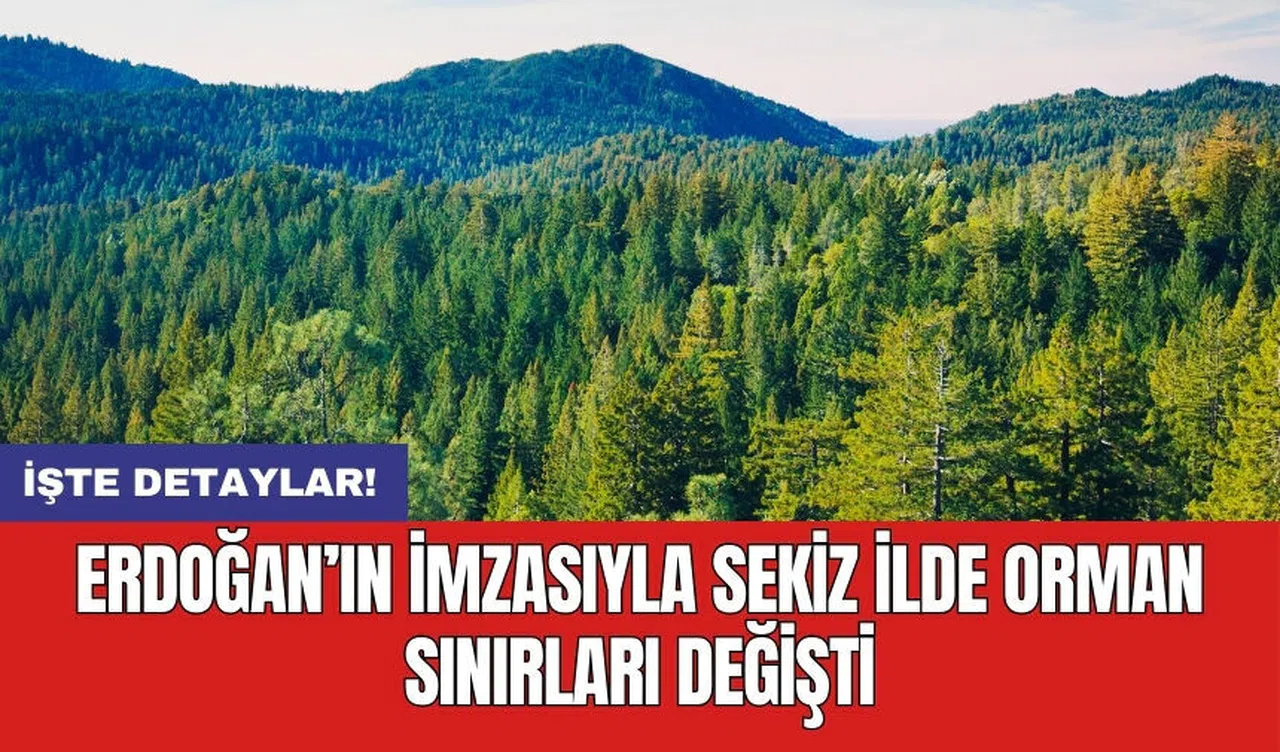 Amasya, Balıkesir, Kastamonu, Manisa, Muğla, Samsun, Sinop ve Sivas illerinde bazı alanlar orman sınırları dışına çıkarıldı. Cumhurbaşkanı Recep Tayyip Erdoğan'ın imzasıyla yayımlanan karar, 18 Temmuz 2024 tarihli Resmi Gazete'de duyuruldu.