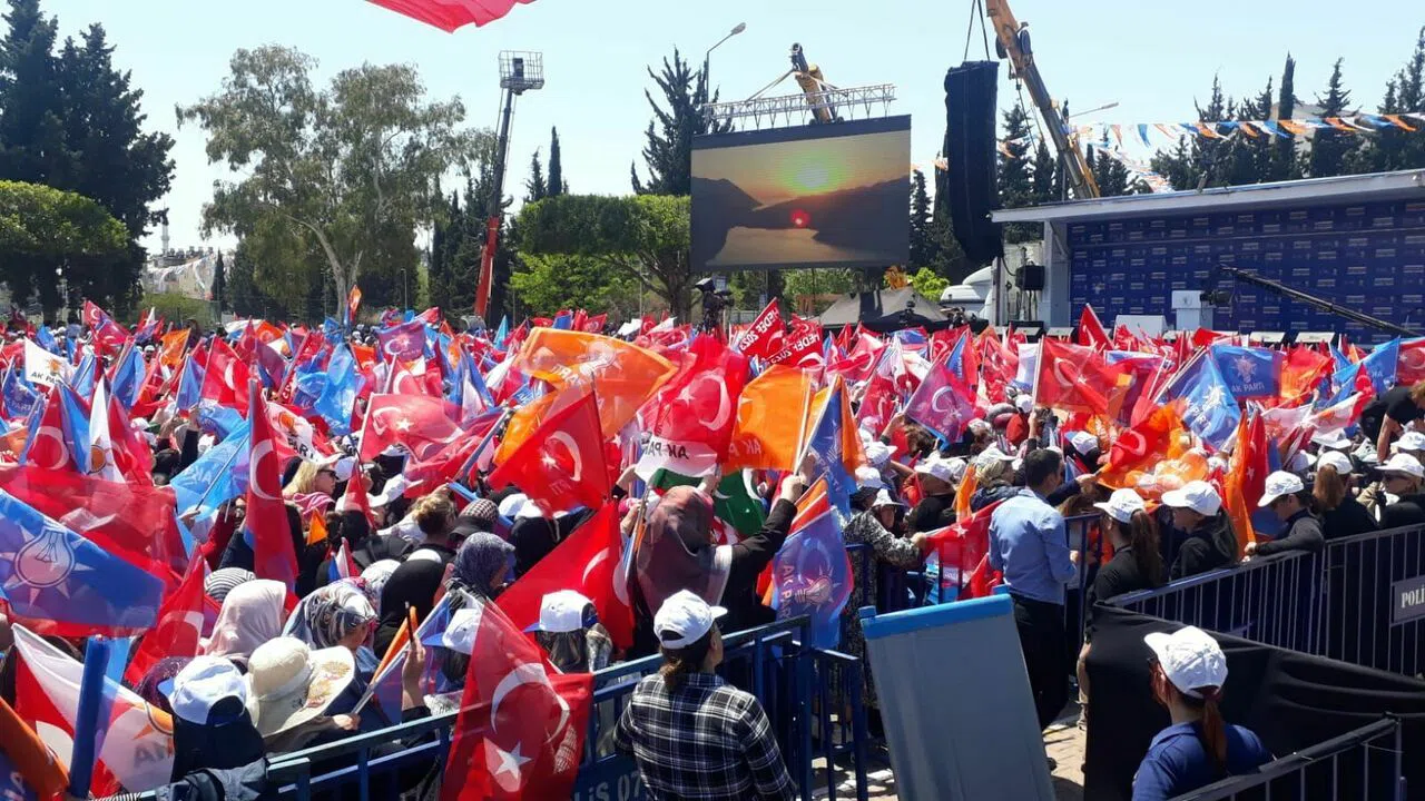 Erdoğan'ın Antalya mitingi öncesi kadın ve erkek vatandaşların arasına bariyer çekilerek miting alanını ikiye böldüğü görüldü.