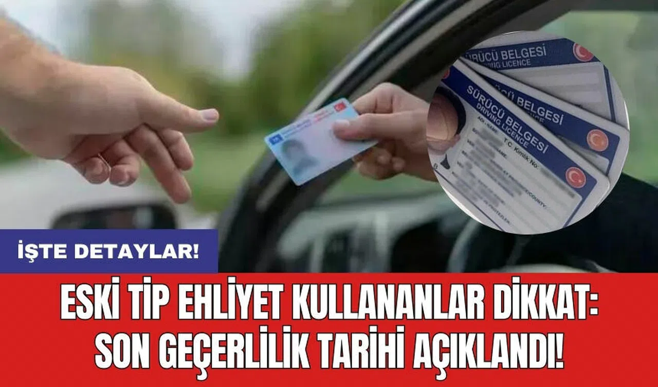 Eski tip sürücü belgelerinin geçerlilik süresi açıklandı. Nüfus ve Vatandaşlık Müdürlüğü yetkilileri, sürücüleri uyardı. Eski tip sürücü belgelerinin geçerlilik süresi 31 Aralık 2024 tarihinde sona erecek.