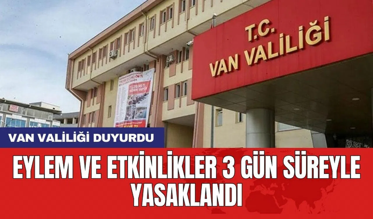 Van Valiliği, gösteri yürüyüşü ve açık hava toplantılarının 3 gün süreyle yasaklandığını duyurdu.