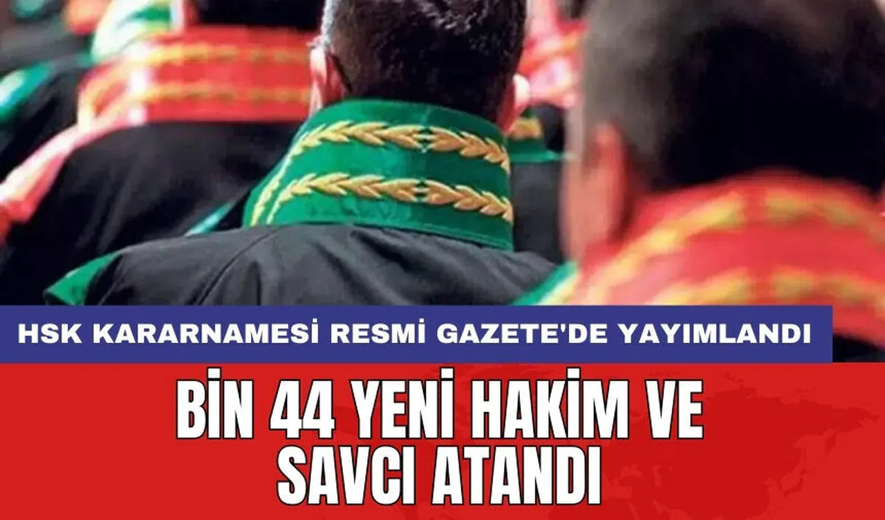 HSK’nin adli yargı hakim ve Cumhuriyet Savcısı adayları ile idari yargı hakim adaylarının, 20 Mayıs 2024 tarihinde yapılan kura sonuçlarına göre yeni atamaya ilişkin kararname Resmi Gazete'de yayımlandı. Buna göre; 973’ü adli yargı hakimi ve cumhuriyet savcısı, 71’i idari yargı hakimi olmak üzere toplam bin 44 yeni hakim ve savcı atandı.