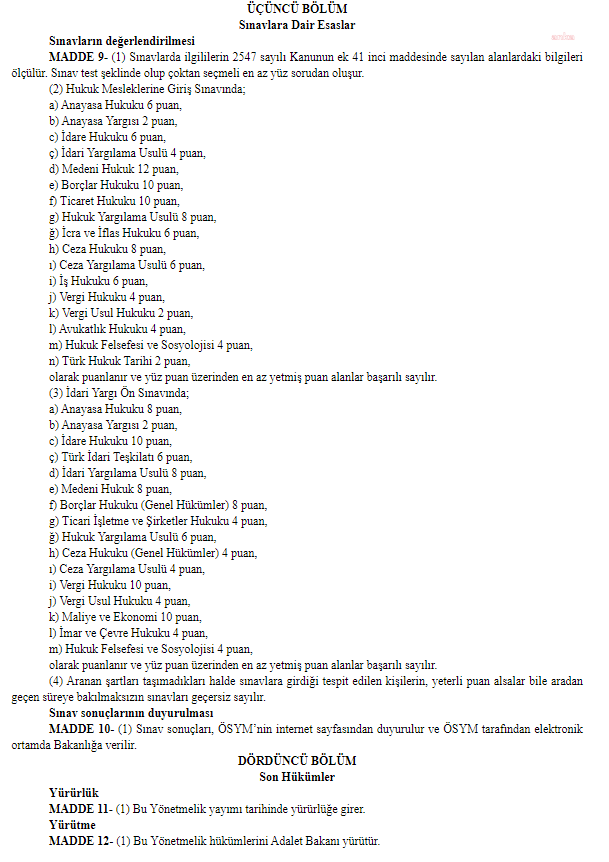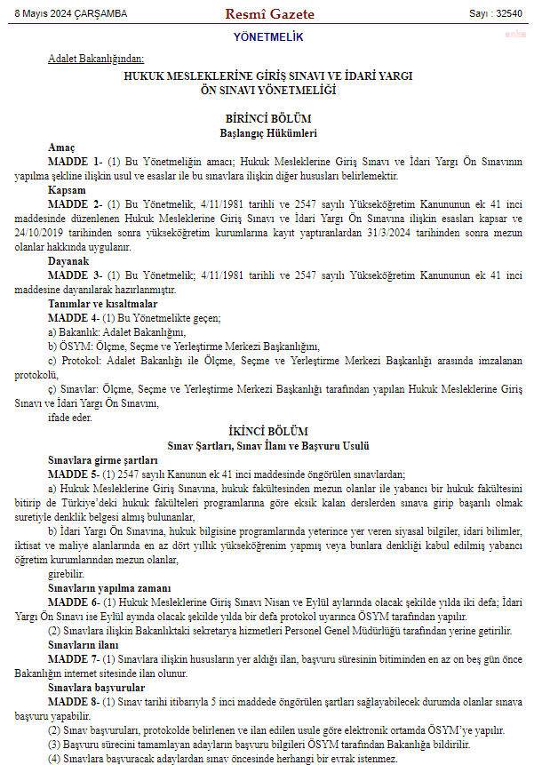 ÖSYM'nin hazırlayacağı Hukuk Melseklerine Giriş ve İdari Yargı Ön Sınavlarının yönetmeliği Resmi Gazete'de yayımlandı.