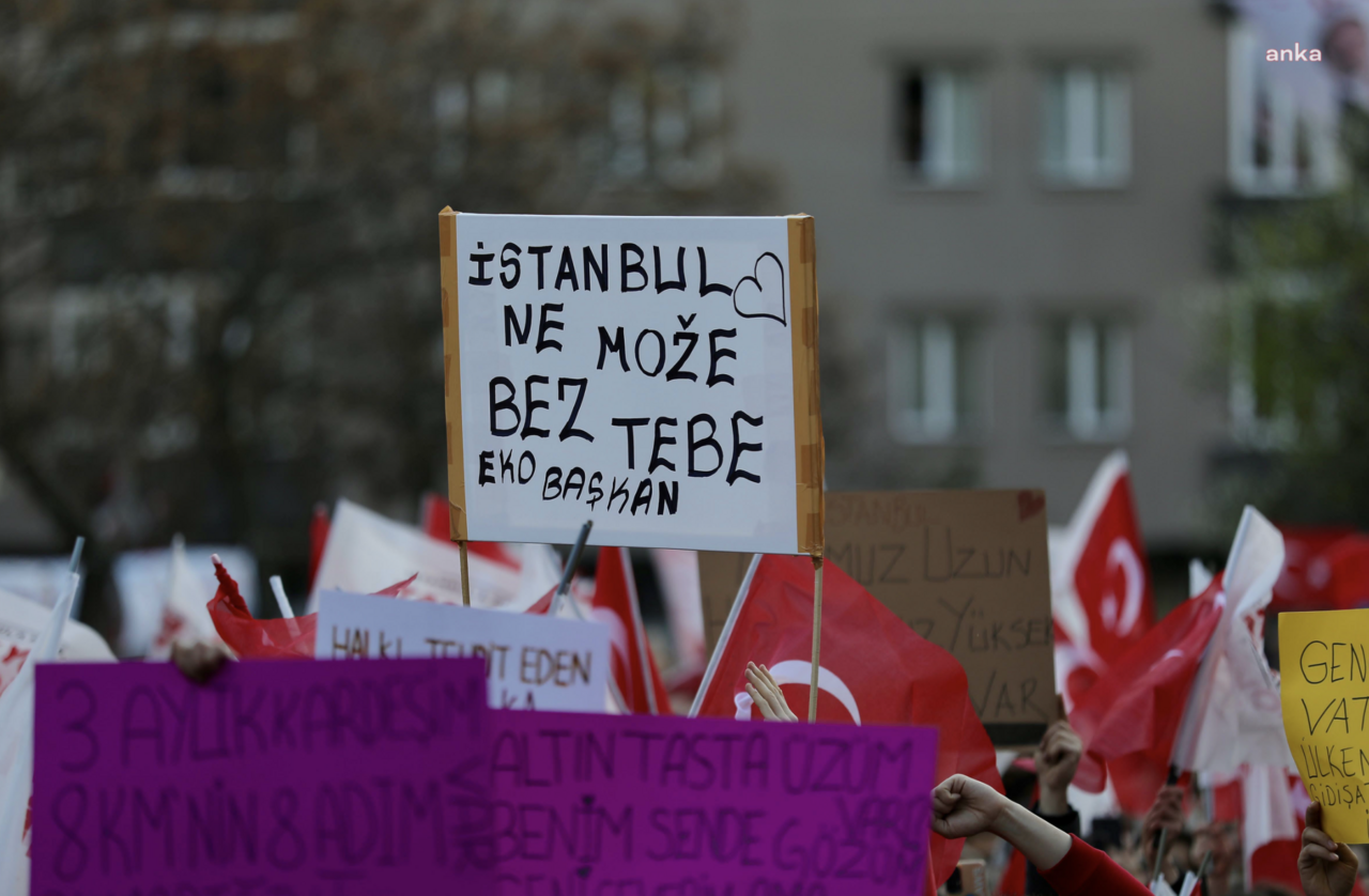 İmamoğlu, son olarak İstanbul seçimlerine dair önemli mesajlar verdi. "31 Mart'ta ne yapacağız biliyor musunuz? İsrafı, ihaneti kumpası, yalanı bütün bu işlerin hepsini Allah'ın izniyle milletin gücüyle tarihe gömeceğiz. Onlara oy vermemek yetmez. Oylarınızı, güçlerinizi tek bir odakta birleştirmeliyiz." dedi.