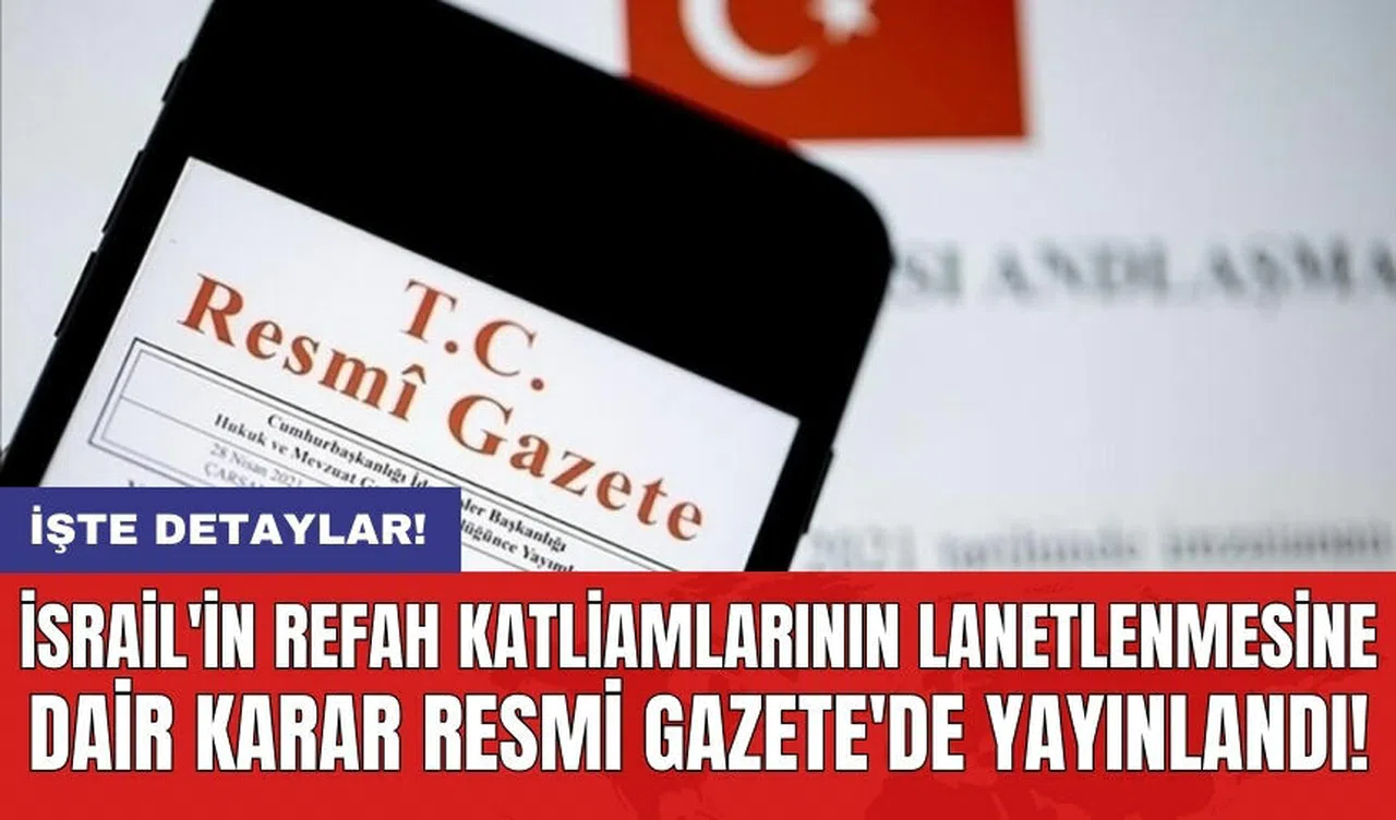 TBMM Başkanı Numan Kurtulmuş'un imzasını taşıyan "İsrail’in Refah Katliamlarına Karşı Bildiri" başlıklı tezkere, dün TBMM Genel Kurulu'nda okunarak onaylandı. Karar, bugün Resmi Gazete'de yayımlandı.