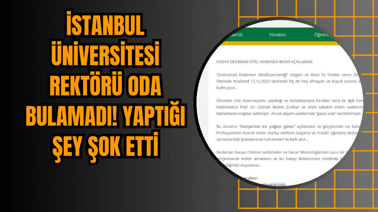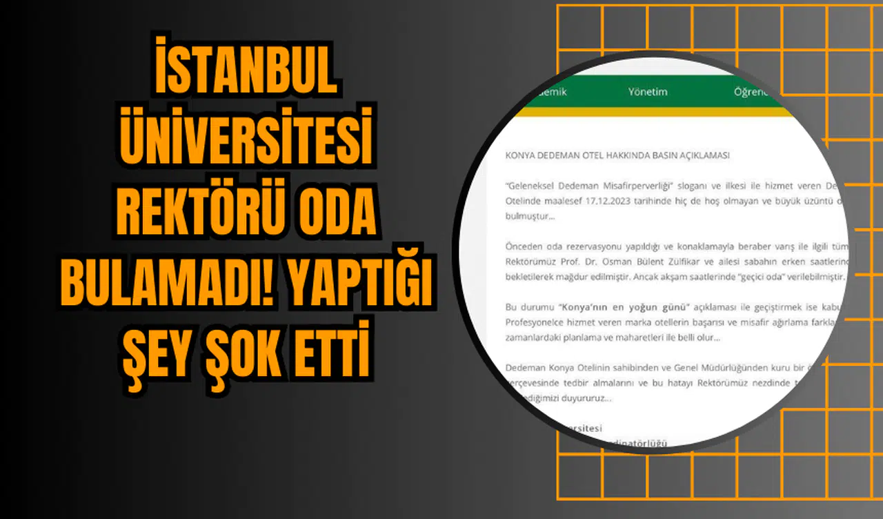 İstanbul Üniversitesi Rektörü Osman Bülent Zülfikar, ailesiyle birlikte Konya Dedeman Otel’de konaklama sıkıntısı yaşadı. Rektör Zülfikar, otelde oda bulamaması üzerine bu durumu İstanbul Üniversitesi’nin resmi hesabının “duyurular” sayfasında paylaştığı iddia edildi.