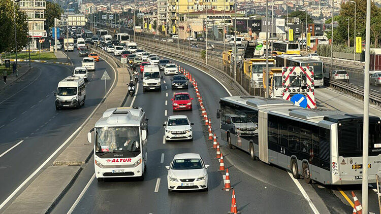 Metrobüs araçları da dubalarla kapatılan şeritten ilerledi.