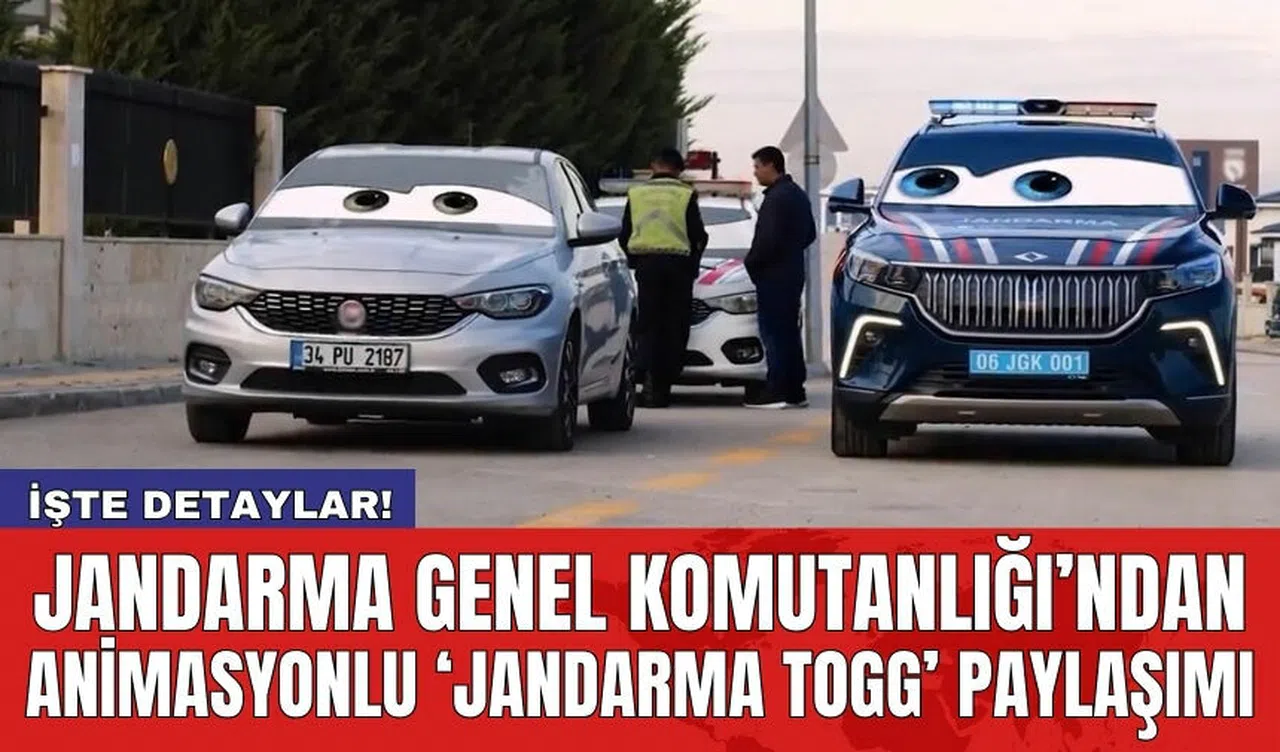 Jandarma Genel Komutanlığı, sosyal medya hesabından animasyonlu ‘Jandarma Togg’ paylaşımı yaptı. Yapılan paylaşımda yaya geçitlerinde dikkat edilmesi gereken kurallar hatırlatılırken trafikte emniyet kemeri takmanın önemi vurgulandı. Trafik kurallarının hatırlatılacağı animasyon ise devam edeceği bildirildi.