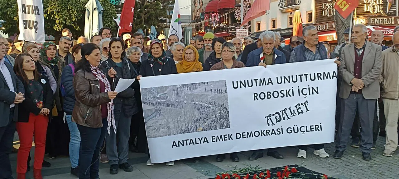 Başkan Hasbay, konunun takipçisi olacaklarını belirterek, “Bu insanlara terörist dendi, milis dendi, kurye dendi. Hiç biri olmayınca aralarında şu terör örgütü bu terör örgütü mensupları var dendi. Ama en nihayetinde bu insanların yaşamlarını idame ettirebilmek için sınır ticareti yaptığı, resmi bir tabirle kaçakçılık yaptığı ortaya çıkmış/anlaşılmıştır. Bu kaçakçılık sizin bir gecede yapılan yolsuzlukların, elde edilen rantların karşısında devede kulak bile değil. Yandaşlara dağıtılan ihalelerin, rantların, çoklu maaş alanların karşısında lafı bile olmaz. Roboskili ailelerin adalet mücadelesi için kurdukları; Roboski için Adalet, Yeryüzü İçin Barış Derneği’de KHK ile kapatıldı. Böylece hak arama yolları tümüyle kapatıldı. Bu ve benzeri olaylarda cezasızlık uygulamasının önü açılmış oldu. Antalya Emek Demokrasi Güçleri olarak diyoruz ki: Ülkemizin tarihinde birden çok Roboski var işte Maraş işte Gar katliamı ve daha niceleri hiçbirinin sorumluları ortaya çıkarılmış ve cezalandırılmış değil, bunlarla yüzleşmeden sorumluları bulunmadan ülkede hukuktan söz etmek mümkün değildir. Toplumsal barışı sağlamak ise hiç olanaklı olmayacaktır. Roboski ve benzeri katliamlar insanlığa karşı işlenmiş suçlardır. İnsanlığa karşı işlenen suçlarda zamanaşımı olmaz. Roboski’nin failleri, azmettiricileri ve kollayıcıları yargılanıp hak ettikleri cezalara çarpıtılıncaya kadar bu davanın takipçisi olacağız. Şayet bir helalleşme olacaksa önce buralardan başlanmalı bu ve benzeri gerçeklerle ile yüzleşilmelidir” diyerek açıklamasını sonlandırdı.