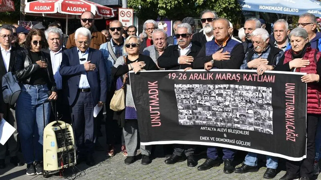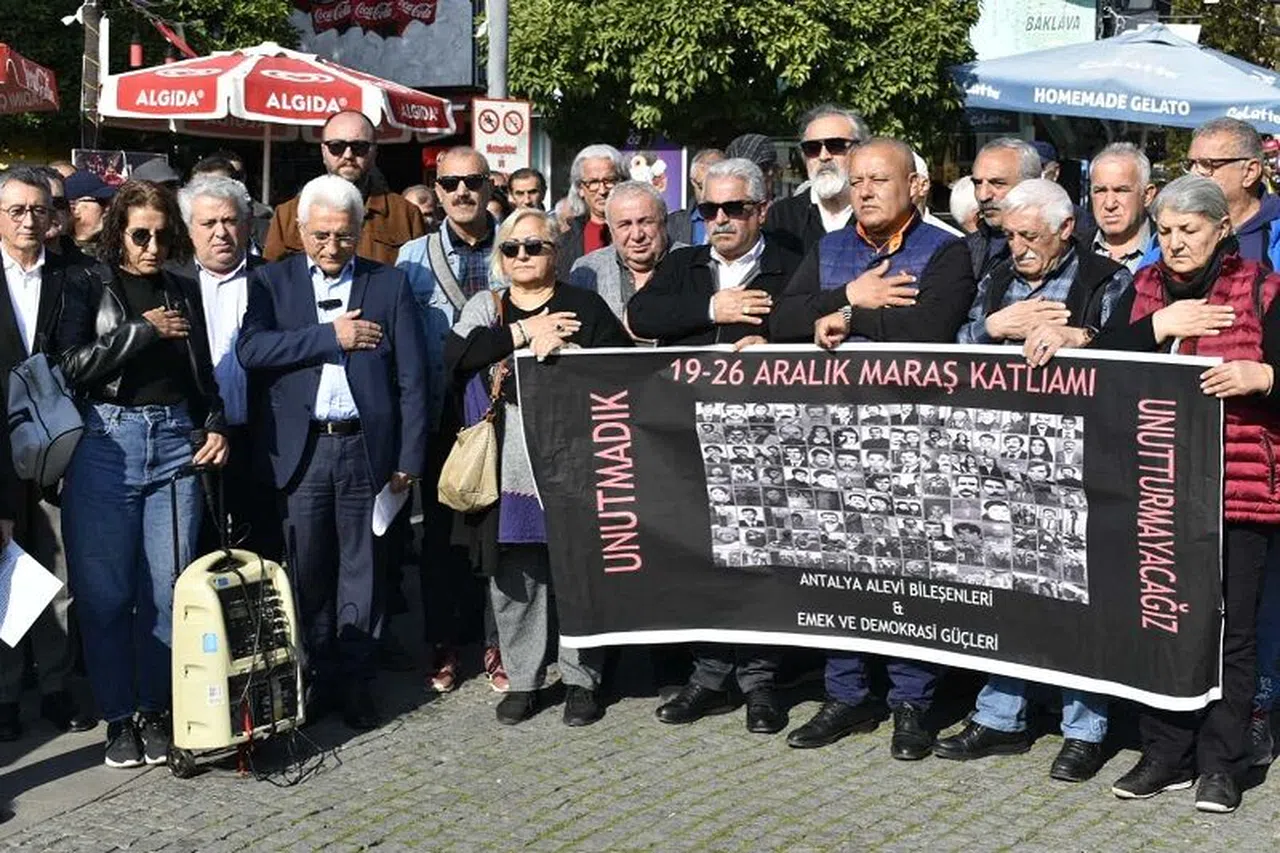 Alevi Bektaşi Federasyonu (ABF), Alevi Dernekleri Federasyonu (ADFE), Avrupa Alevi Birlikleri Konfederasyonu (AABK), Alevi Kültür Dernekleri (AKD), Pir Sultan Abdal Kültür Derneği (PSAKD) ve Antalya Emek ve Demokrasi Güçleri adına önceki gün Attalos Heykeli önünde gerçekleştirilen basın açıklamasını Hacı Bektaş Veli Anadolu Kültür Vakfı (HBVAKV) Antalya Şube Başkanı Nurettin Erdoğan okudu. Başkan Erdoğan, “19 Aralık 1978 günü başlayıp tam bir hafta süren ve insanlık tarihinin en kara günlerinden biri olarak tarihe geçen Maraş Katliamının 44.yılında katledilen canlarımızı bir kez daha anıyor ve anıları önünde saygı ile eğiliyoruz. Bizler; demokrasinin, insan haklarının, özgürlüklerin, hukukun üstünlüğünün, adaletin yeşermesini istediğimiz bu coğrafyada katliamlarla yüzleşmenin şart olduğunu düşünüyoruz. Türkiye Halkları ve Türkiye Cumhuriyeti Devleti geçmişiyle, tarihiyle, katliamlarla yüzleşmek zorundadır. Bu yüzleşme gerçekleşmeden bu ülkeye demokrasi asla gelmeyecektir” dedi.