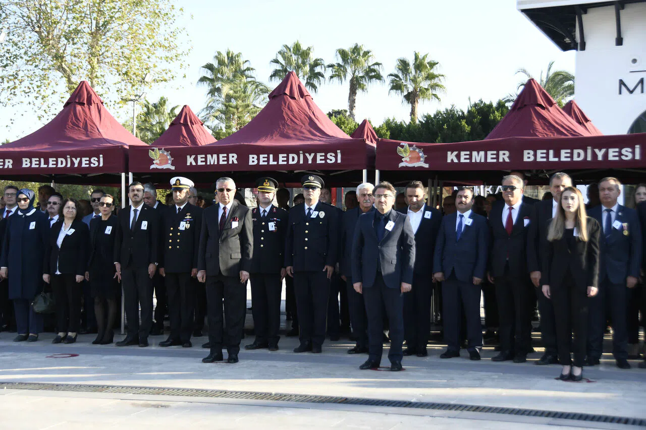 Kemer Belediye Başkanı Necati Topaloğlu ise yaptığı açıklamasında, Atatürk’ü saygı, minnet ve şükranla andıklarını belirterek, “Atatürk çok büyük bir insan, komutan, devlet adamı ve ekonomistti. Vatanımızı yoktan var etti ve dünyaya örnek oldu. Atatürk’ün bize bıraktığı Cumhuriyeti ilelebet koruyacağız. Atamızı ve silah arkadaşlarını saygıyla anıyoruz.” diye konuştu.