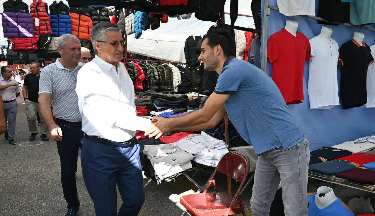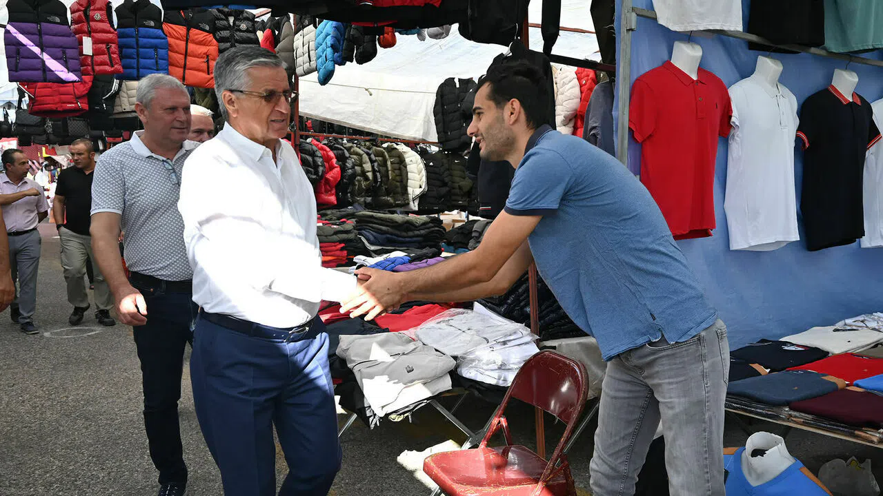 Perşembe günleri Deniz Caddesi üzerinde kurulan turizm tekstil pazarında tezgah açan esnafı ziyaret eden Başkan Topaloğlu ve Başkan Yardımcısı Gül, esnafla sohbet ederek hayırlı işler temennisinde bulundu.