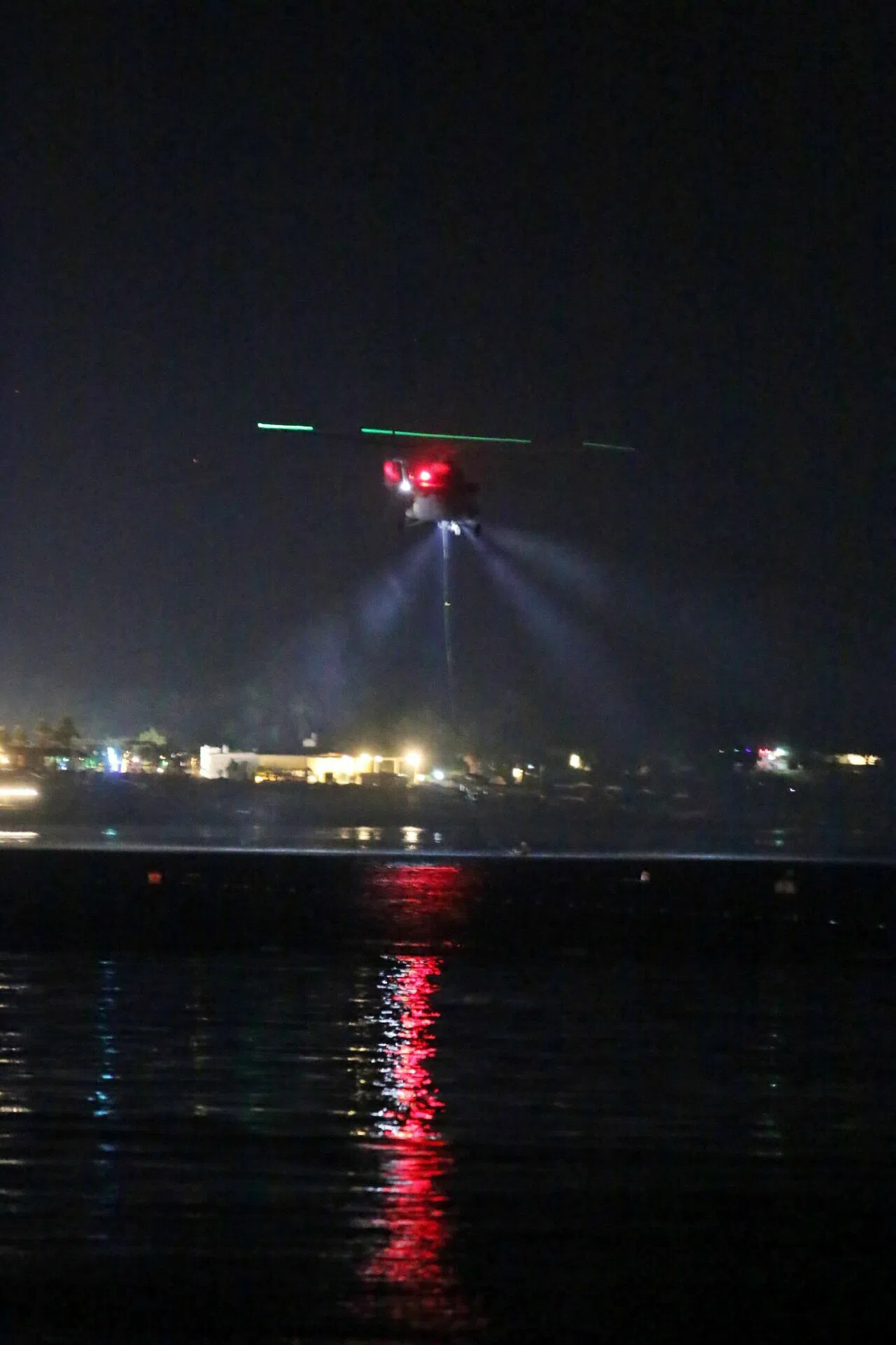 Akşam saatlerinde diğer hava güçlerinin söndürme çalışmasını sonlandırmasıyla, kanyon kısmı tekrar alevlendi. Gece görüş özelliği taşıyan 5 helikopter, yoğun sortiler düzenleyerek alevlerin bir yandan yayılmasını önlemeye bir yandan da söndürmeye çalışıyor. Denizden su alan helikopterler, kısa sürede ulaştıkları alana yoğun müdahalede bulunuyor. Bölgede ekiplerin karadan da çalışması sürüyor.