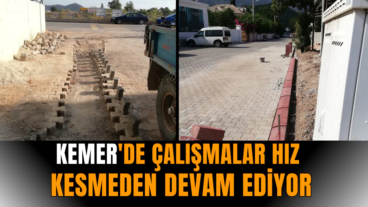 Kemer Belediyesi Fen İşleri Müdürlüğü ekipleri, ilçe genelinde yol ve kaldırım çalışmalarına ara vermeden devam ediyor.