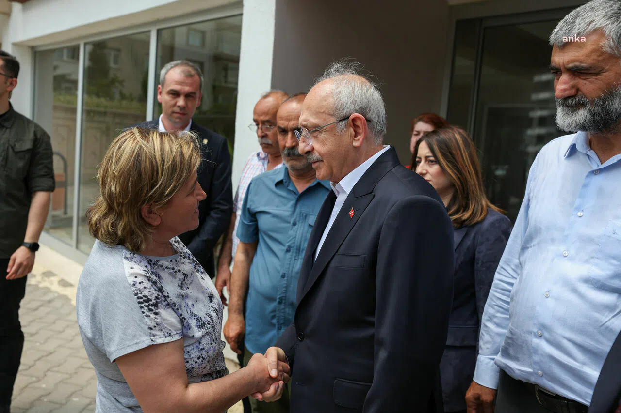 CHP Genel Başkanı Kemal Kılıçdaroğlu, Babalar Günü’nde Kahramanmaraş merkezli 6 Şubat depremlerinden etkilenen Hatay Defneli Keremoğlu ve Antakyalı Uçar ailelerini Ankara Yenimahalle’deki evlerinde ziyaret etti. CHP lideri Kılıçdaroğlu’na ziyareti sırasında Genel Başkan Yardımcısı Aysu Bankoğlu ve Yenimahalle Belediye Başkanı Fethi Yaşar eşlik etti. Kılıçdaroğlu, depremzedelerin sorunlarını dinledi ve çocuklarıyla hatıra fotoğrafı çektirdi.