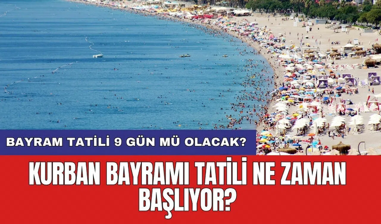 Kurban Bayramı'nda resmi tatil, 16 Haziran Pazar, 17 Haziran Pazartesi, 18 Haziran Salı ve 19 Haziran Çarşamba günleri olarak belirlendi. Ancak, bayram izinlerinin artırılması için hükümetin 20 Haziran Perşembe ve 21 Haziran Cuma günlerini de resmi tatil ilan etme ihtimali bulunuyor. Böyle bir durumda, bayram tatili hafta sonlarıyla birlikte 9 günü bulacak.