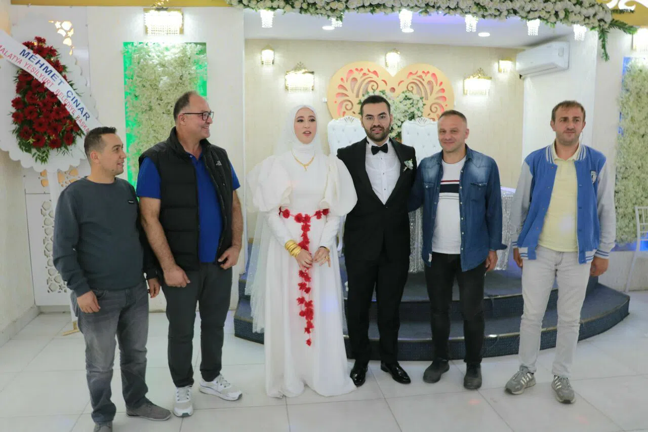 Damat Musab Hadiç ise, "Kahramanmaraş'ta yaşadığımız ev depremde yıkıldı ve ben de enkazdan çıkarıldım. Eşim yanlızca tek başınaydı ve kimse yoktu ona destek olmak istedim. Ben de yaralıydım. Gönüllü abilerimiz geldi ve 8 gün boyunca hiç durmadan çalıştılar ve cenazeleri çıkardılar. Şimdi düğünümüze geldiler, kendilerine minnettarız" dedi.