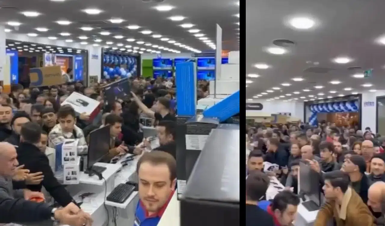 Elektronik mağazasının açılışında yaşanan izdiham anları, bir vatandaşın cep telefonu kamerasıyla kaydedildi. Görüntülerde, vatandaşların kampanyalı ürünler için adeta birbirleriyle yarıştığı, kasa önünde oluşan kalabalığın yoğunluğu ve bazı kişilerin fenalaşma anları net bir şekilde görülüyor.
