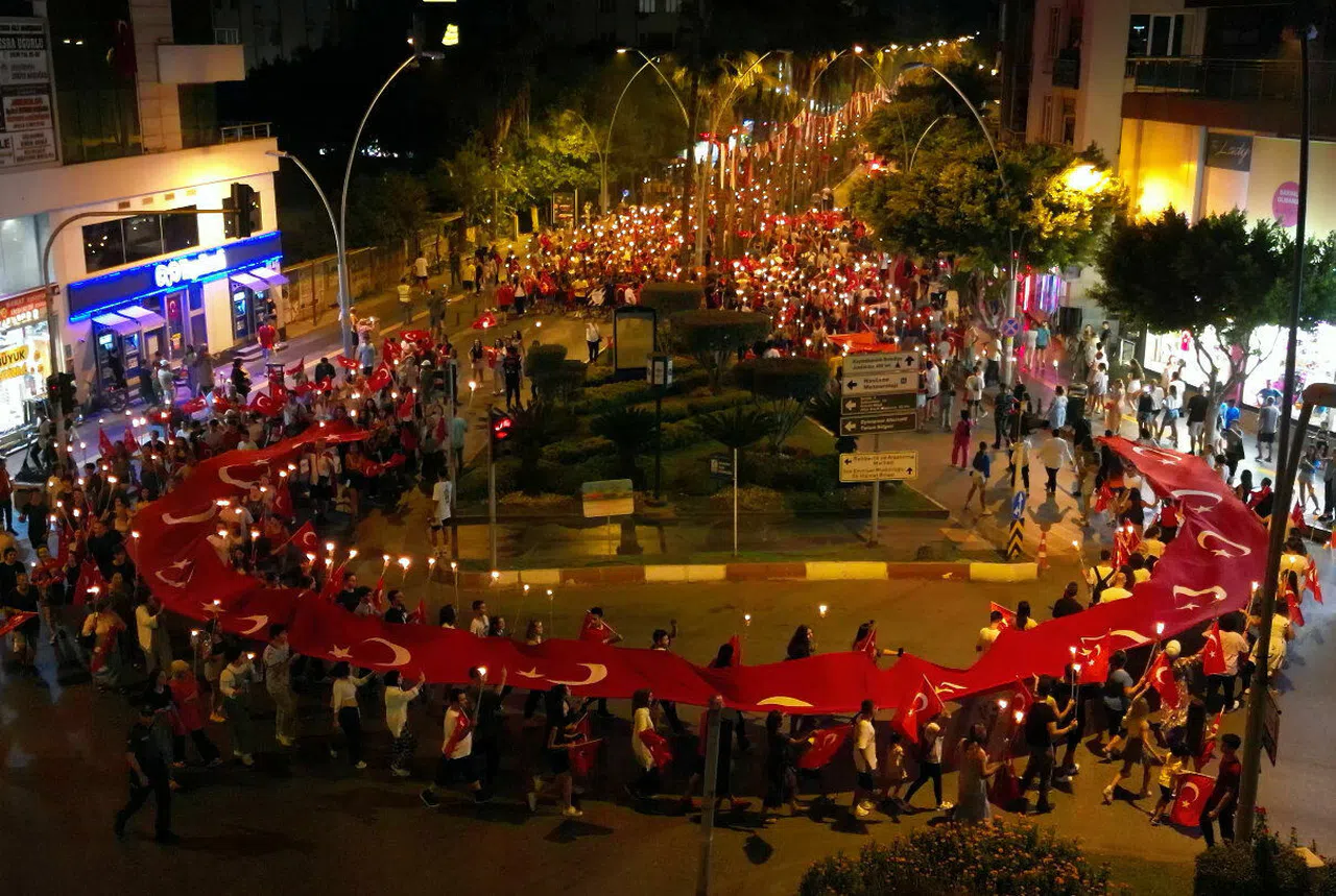 Manavgat Belediyesi’nden alınan bilgiye göre, 30 Ağustos Zaferinin 101’nci yılını, Fener Alayı ve İskender Paydaş konseriyle kutladı. Binlerce Manavgatlı, Cumhuriyet Meydanı’nda tek yürek olarak toplandıktan sonra ellerinde Türk Bayrağı ve meşalelerle Fener Alayı Yürüyüşü gerçekleştirdi. Fener Alayına Manavgat Belediye Başkanı Şükrü Sözen, eşi Hatice Sözen, kızı İrem Sözen, oğlu İbrahim Sözen, CHP Manavgat İlçe Başkanı Oykun Başar, İYİ Parti İlçe Başkanı Hüseyin Ergen, CHP Antalya Milletvekili Aliye Coşar, İYİ Parti Antalya Milletvekili Aykut Kaya, oda başkanları, stk temsilcileri, muhtarlar ve binlerce vatandaş katıldı. 30 Ağustos Zafer Bayramı’nı büyük bir coşkuyla kutlayan kent halkı, Cumhuriyet Meydanı, Yapay Şelale ve İbrahim Sözen Caddesi üzerinden konserin yapılacağı alan olan Atatürk Kültür Merkezi’ne ulaştı. Başkan Şükrü Sözen, elinde meşale ve Türk Bayrağı ile yürürken balkonlardan destek veren halkı selamladı.
