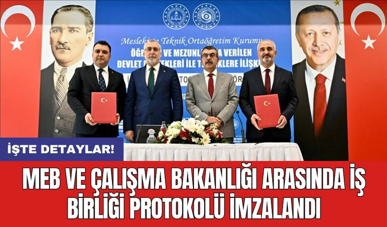 Milli Eğitim Bakanlığı (MEB) ile Çalışma ve Sosyal Güvenlik Bakanlığı arasında, "Mesleki ve Teknik Anadolu Lisesi Mezunlarına Sağlanan Teşvikler ve Öğrencilere Yönelik Devlet Katkıları" temalı işbirliği protokolü imzalandı.