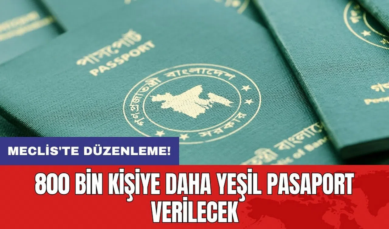 Türkiye Büyük Millet Meclisi'nde yeşil pasaport düzenlemesi ile ilgili çalışmalar hız kazandı. Sözcü Gazetesi'nden Zekeriya Albayrak'ın haberine göre, CHP, MHP, DP, DEVA, YRP ve İYİ Parti tarafından hazırlanan yasa teklifleri kapsamında eczacılar, gazeteciler, TIR şoförleri ve birçok meslek grubuna yeşil pasaport verilmesi öngörülüyor. Bu düzenleme ile en az 800 bin kişinin daha yeşil pasaport sahibi olması bekleniyor.