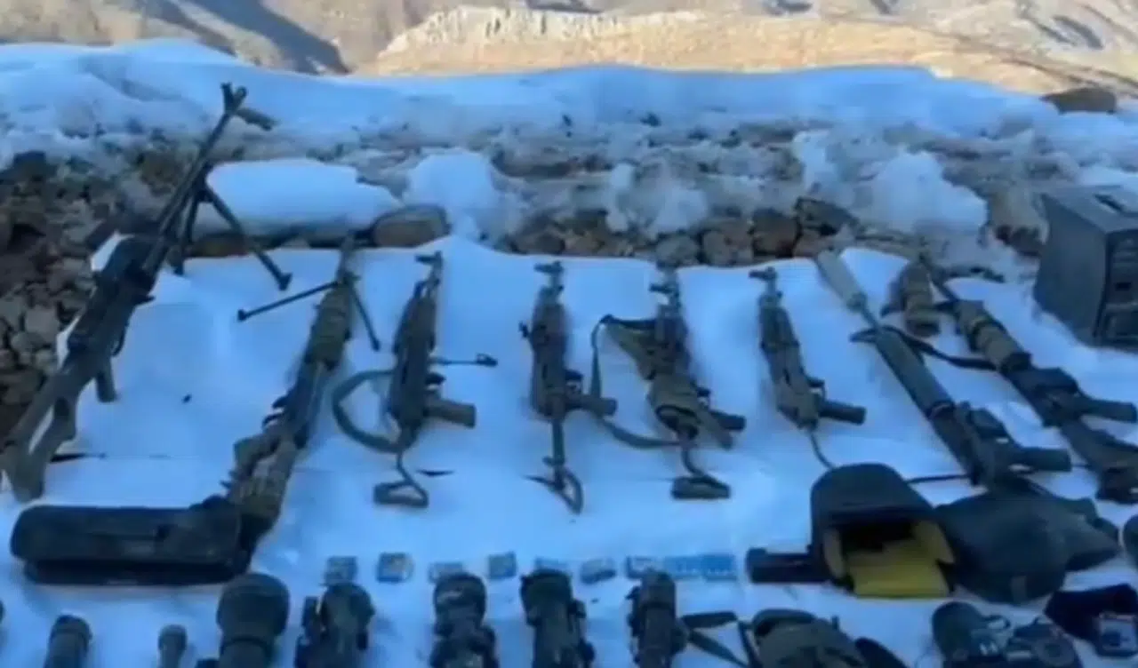 Mağarada çok sayıda silah ve mühimmat ele geçirildi.