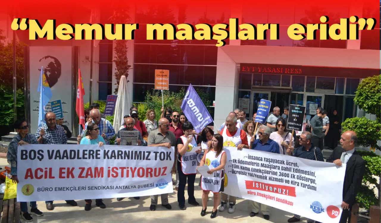 “Siyasetin gündemi 14 Mayıs’ta yapılacak seçimlere kitlenmiş bulunuyor” diyerek emekçilerin geri plana atıldığını vurgulayan BES Antalya Şube Başkanı Devrim Mol, “Emeğiyle geçim mücadelesi veren kamu emekçileri, emekliler, işçiler, milyonlar olarak bizlerin temel gündemi ise geçim derdi olmaya devam ediyor. TÜİK’e bakarsanız yıllık enflasyon yüzde 50, gıda enflasyonu yüzde 68, kiralarda yıllık artış ise yüzde 56 civarında. Ülkeyi yönetenler bu sanal rakamları gösterip ‘Enflasyon geriledi’ nutukları atıyor. Oysa güneş balçıkla sıvanmıyor. OECD ülkeleri başta olmak üzere dünyada gıda fiyatları düşüyor. Ama ülkemizde son bir yılda gıda ürünlerinin fiyatları ortalama iki kat arttı. Zaten yüksek olan kiralar 6 Şubat depremleri sonrasında TÜİK rakamlarını üçe katladı. Son bir yılda süt yüzde 240, peynir yüzde 250, salça yüzde 280, baharat yüzde 300, meyveler ortalama yüzde 200, bakliyat ürünleri ortalama yüzde 150 zamlandı. Bırakalım kırmızı eti beyaz eti bile unuttuk. Tedavüldeki en değerli banknotunuz 200 TL ile alabildiğimiz kıyma 600 grama indi. Hız kesmeden devam eden zam sağanağında marketleri müze gezer gibi gezer, raflara bakıp bakıp çıkar hale geldik” diye konuştu.