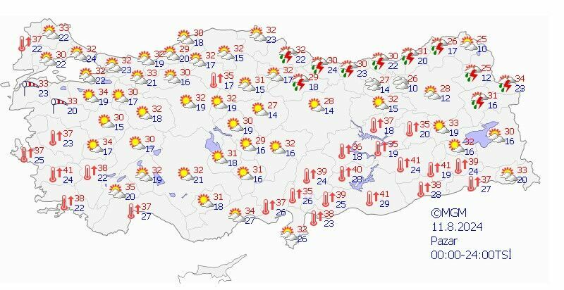 Meteoroloji Genel Müdürlüğü'nün son değerlendirmelerine göre, Türkiye'nin kuzey ve iç kesimleri ile Akdeniz bölgesinin iç ve doğu kesimleri parçalı bulutlu olacak. Özellikle Toroslar mevkii, Orta ve Doğu Karadeniz kıyıları, Tokat, Kars, Ardahan, Ağrı, Iğdır, Osmaniye, Kahramanmaraş'ın batısı, Hatay'ın kıyı kesimleri, Erzurum'un güney ve doğusu, Van'ın kuzey ve doğusu, Kırklareli'nin Karadeniz'e bakan kıyı kesimleri ve Tekirdağ'ın doğu kesimlerinde yerel sağanak ve gök gürültülü sağanak yağışlar görülecek.