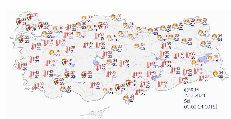 Afyonkarahisar: Parçalı bulutlu, öğle saatlerinden sonra yerel sağanak ve gök gürültülü sağanak yağışlı, 36°C