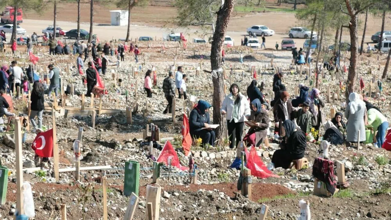 Kahramanmaraş’ta, Ramazan Bayramı'nın birinci günü mezarlık ziyaretleri başladı. Özellikle depremde hayatını kaybedenler için oluşturulmuş mezarlıklarda yoğunluk oluştu. Hayatını kaybedenlerin akrabaları kabirlerini ziyaret edenler, çiçekler ekip düzenlemeler yaptı. Dualar okuyan vatandaşlar, mezar başlarında gözyaşı döktü. Numaralanan bazı mezarların düzenlenerek mezar taşları yerleştirildiği görüldü. Öte yandan, mezar taşlarında ve numara tahtalarında, depremde hayatını kaybedenlere ait özel eşyalar dikkat çekti. Mezarlık ise havadan görüntülendi.