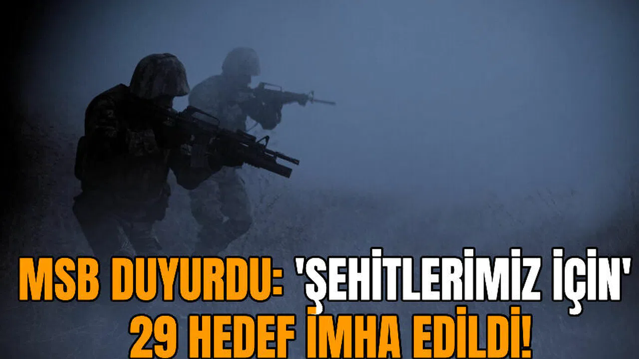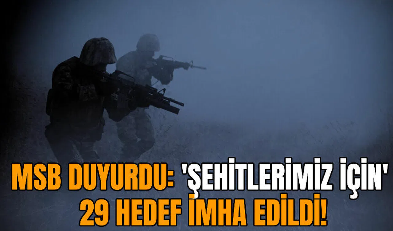 Milli Savunma Bakanlığı'ndan 'Şehitlerimiz için' başlığıyla yapılan açıklamada, 'Irak ve Suriye’nin kuzeyine düzenlenen hava harekatında içerisinde sorumlu düzeyde teröristlerin bulunduğu mağara, sığınak, barınak, petrol tesisleri ve depolardan oluşan 29 hedef imha edildi.' denildi.