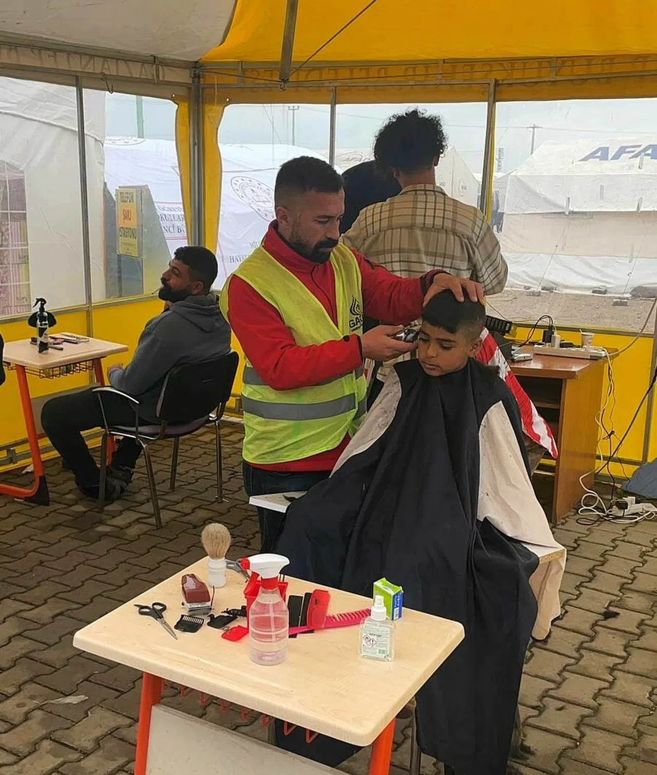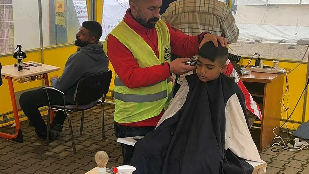 Gönüllü berber ve kuaförler, Gaziantep’in Islahiye ilçesinde çadır kentlerde afetzedelere hizmet verdi.