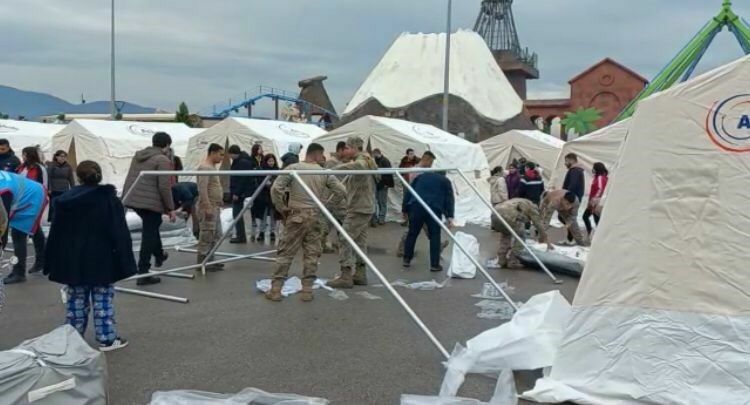 AFAD, Kızılay ve askerler çadır kurma çalışması başlattı. Adnan Menderes Mahallesine getirilen çadırlar evsiz kalan vatandaşlar için tek tek kurulmaya başlandı.İHA