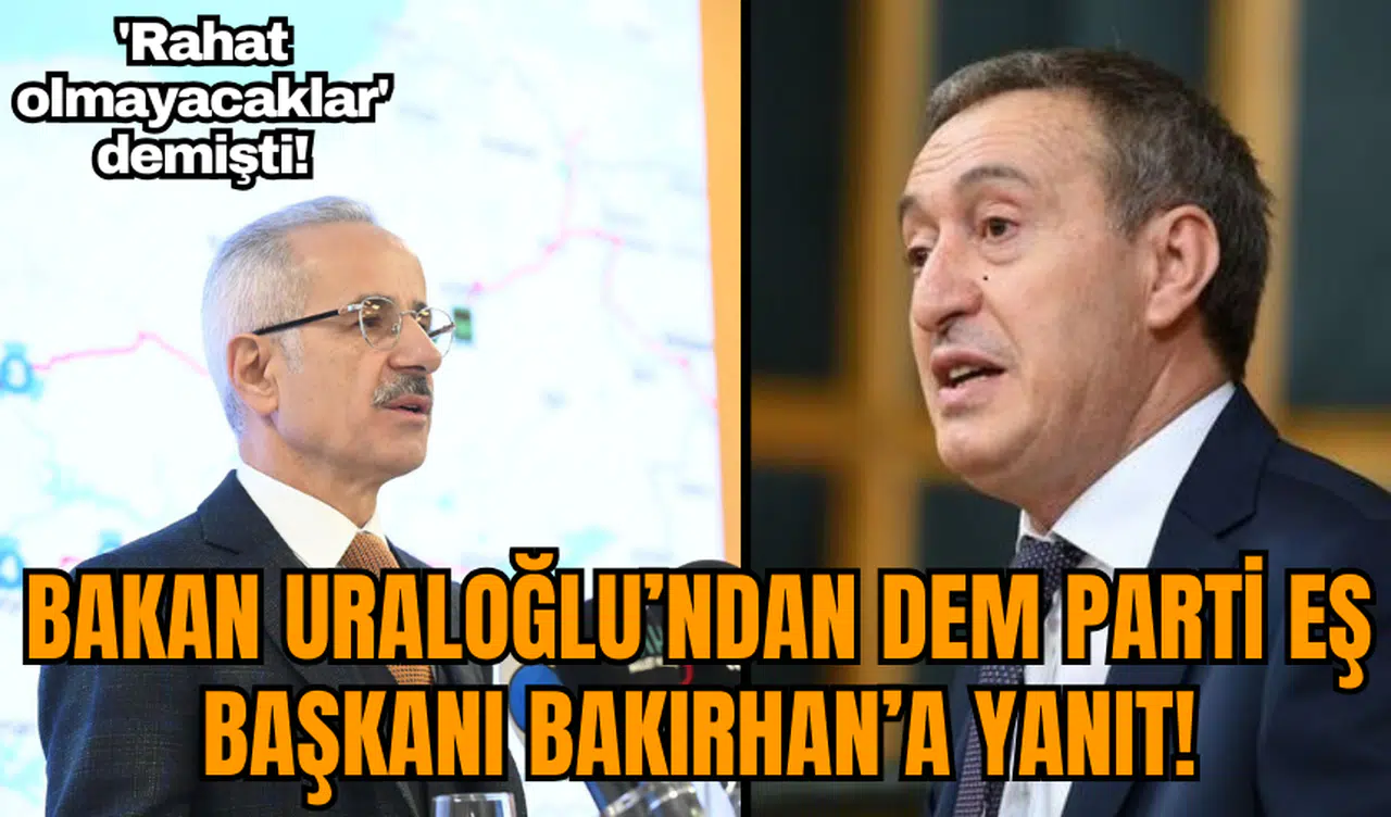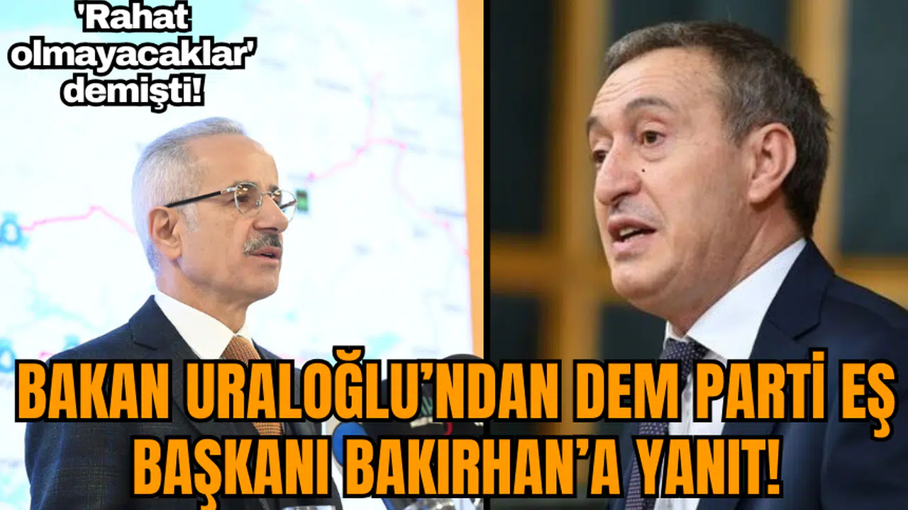 DEM Prtili Bakırhan'a tepki çığ gibi büyürken, Ulaştırma ve Altyapı Bakanı Abdulkadir Uraloğlu, 'Trabzon'dan Tekirdağ'a Hakkari'den Edirne'ye hiç fark etmez, memleketimizin pek çok şehrini hedef gösterenler, sadece Türkiye’de değil, dünyanın hiçbir yerinde rahat ve huzur yüzü görmeyecek' dedi.