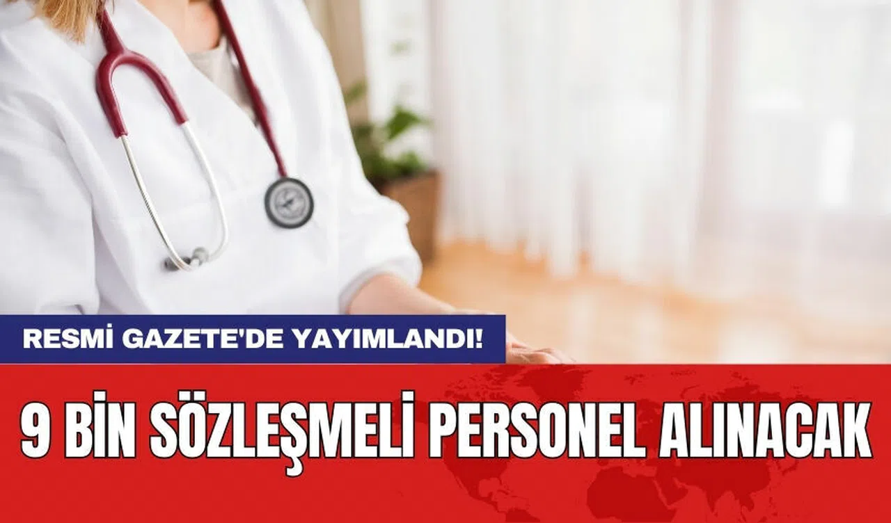 Sağlık alanında önemli bir adım atıldı. Cumhurbaşkanı Recep Tayyip Erdoğan'ın imzasıyla Resmi Gazete'de yayımlanan karara göre, sağlık sektöründe önemli düzenlemeler yapıldı ve ihtiyaç duyulan yerlere 9 bin yeni sözleşmeli sağlık personeli alınacak.