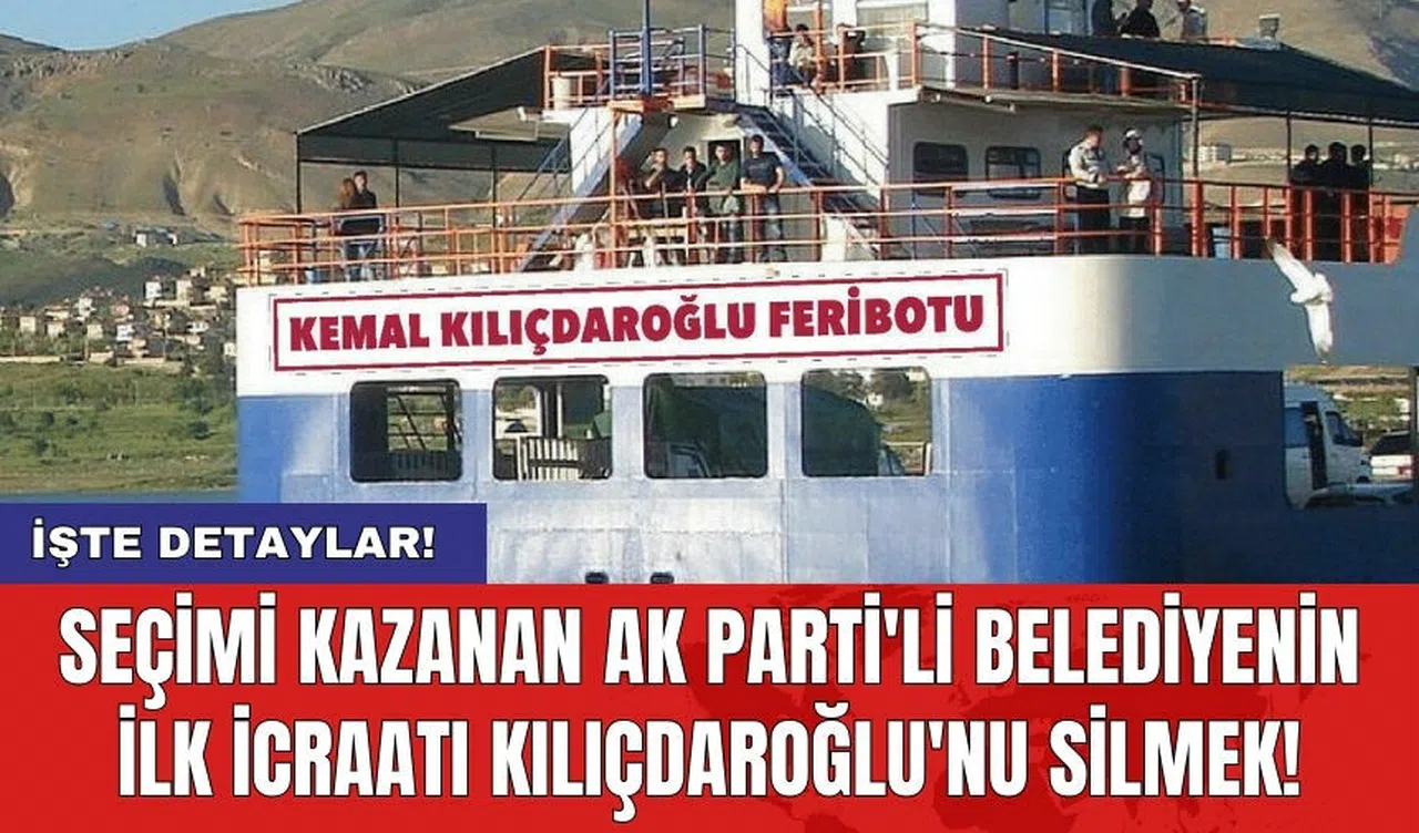 AK Parti'li Pertek Belediyesi, ilk meclis toplantısında gündeme getirdiği konulardan biri de belediyeye ait olan Kemal Kılıçdaroğlu isimli feribotun ismini değiştirmek oldu. Kemal Kılıçdaroğlu'nun isminin kaldırılması kararına, 4 AK Parti'li meclis üyesinin "evet" oyu verirken, 3 EMEP'li ve 2 CHP'li meclis üyesi "ret" oyu kullandı. AK Parti'li Başkan Recai Vural'ın da "evet" oyu kullanmasıyla feribottan Kemal Kılıçdaroğlu isminin kaldırılmasına karar verildi.