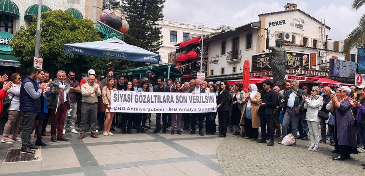 Çağdaş Hukukçular Derneği (ÇHD) ve İnsan Hakları Derneği (İHD) Antalya Şubeleri, aralarında İHD yöneticilerinin de bulunduğu aktivistlere yönelik gözaltılara ilişkin bugün Attalos Heykeli önünde basın açıklaması yaptı.