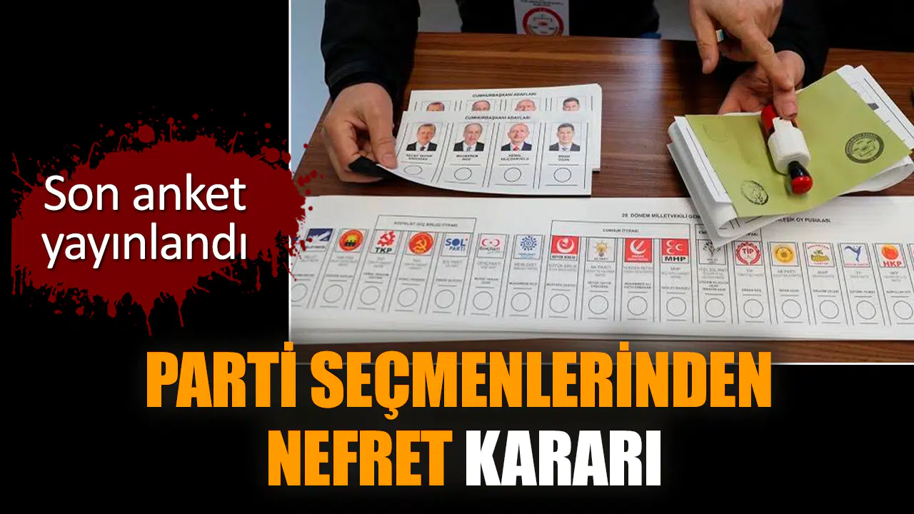 MetroPOLL Araştırma şirketi, 'Türkiye'nin Nabzı' isimli araştırma serisinin ağustos ayı sonuçlarını kamuoyuyla paylaştı. 14-18 Ağustos tarihleri arasında 28 ilde gerçekleştirilen araştırma kapsamında, bin 801 vatandaşa "Nefret ettiğiniz bir siyasetçi var mı" sorusu soruldu. İşte 14 Mayıs Cumhurbaşkanlığı Seçimi'nde oy verdikleri partilere göre vatandaşların verdiği yanıtlar: