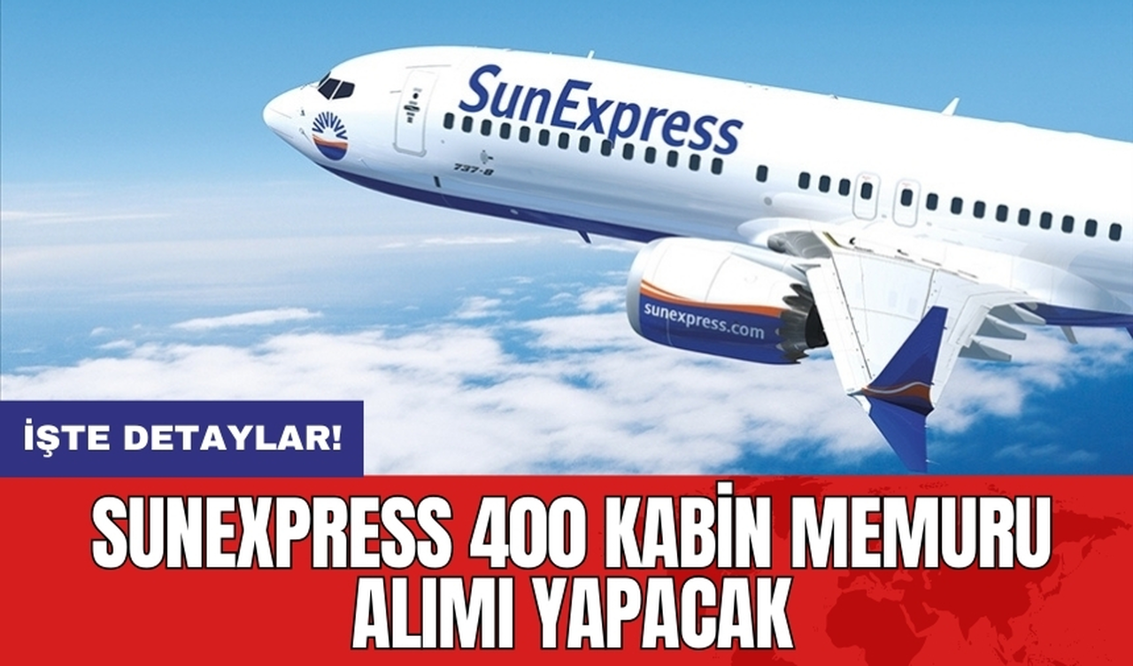 Türk Hava Yolları ve Lufthansa'nın ortak kuruluşu olan SunExpress, kabin memuru kadrosuna 400 personel alımı yapacağını duyurdu. Şirketin, kabin memuru olmak isteyen adaylara yönelik yayınladığı ilana göre, belirlenen kriterleri sağlayan adaylar başvuruda bulunabilecek.
