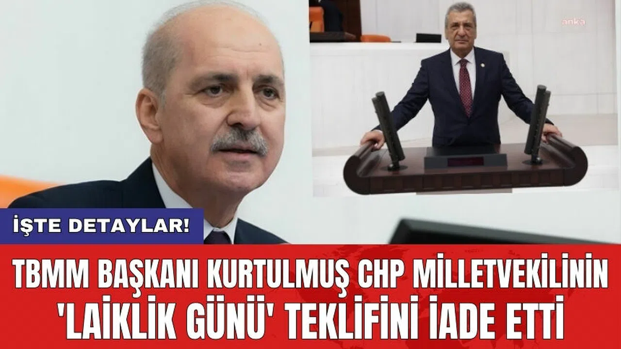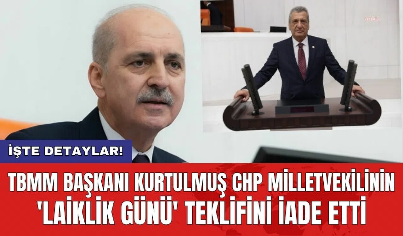 TBMM Başkanı Numan Kurtulmuş, CHP Gaziantep Milletvekili Hasan Öztürkmen'in 3 Mart’ın 'Laiklik Günü' ilan edilmesi için verdiği kanun teklifini iade etti. Kurtulmuş, gerekçesinde 'kaba ve yaralayıcı' ifadeler olduğunu belirterek teklifi geri gönderdi. İşte detaylar: