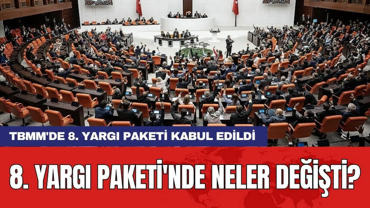 TBMM Genel Kurulu'nda, "Ceza Muhakemesi Kanunu ile Bazı Kanunlarda ve 659 Sayılı Kanun Hükmünde Kararnamede Değişiklik Yapılmasına Dair Kanun Teklifi"nin birinci bölümünde yer alan 16 madde kabul edildi. Bu paket, yaygın olarak 8. Yargı Paketi olarak biliniyor.