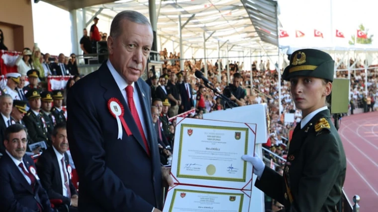 Millî Savunma Üniversitesi (MSÜ) Kara Harp Okulu’nun diploma alma töreni, 30 Ağustos’ta gerçekleşti. Bu tören sırasında Teğmen Ebru Eroğlu, birincilik diplomasını Cumhurbaşkanı Recep Erdoğan’dan aldı. Aynı başarıyı Deniz ve Hava Harp Okulları’nda da kadın teğmenler elde etti.