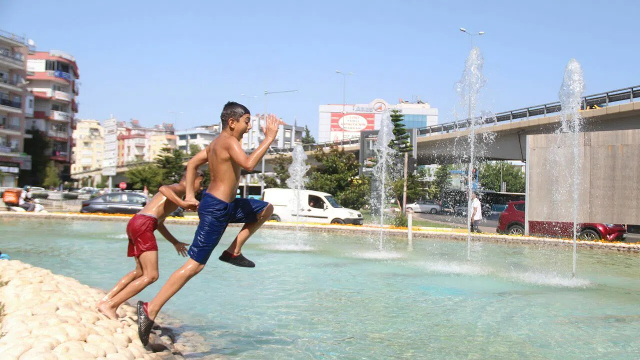 Antalya’da sıcak havadan bunalan bazı çocuklar, denize gitmek yerine parklardaki süs havuzlarında serinlemeyi tercih etti. Kentte hava sıcaklığı 30 derece, nem oranıysa yüzde 64 olarak ölçülürken; Muratpaşa ilçesi Etiler Mahallesi Mevlana Kavşağı’ndaki süs havuzuna gelen iki çocuk, kıyafetlerini çıkarıp süs havuzuna girdi. Hijyenik olmayan havuzda uzun süre yüzen çocuklar, akrobatik atlayışlar gerçekleştirdi. İki arkadaş, içinde aydınlatma ve fıskiye sistemi nedeniyle elektrik kaçağı olabilecek olan havuzdaki dakikalarca eğlendi. Zaman zaman fıskiyelerin üzerinde yürüyen çocuklar, polislerin uyarmasıyla havuzdan ayrıldı.