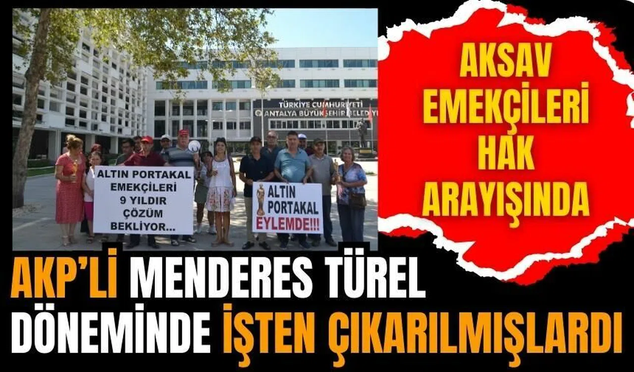 2014 Yılında AKP’li Menderes Türel döneminde Antalya Kültür Sanat Vakfı’nın (AKSAV) kapatılacağı iddiasıyla işten çıkarılan AKSAV emekçileri 9 yıldır tazminatlarını alamadı. Konuyla ilgili birkaç kez belediye önünde basın açıklaması yapan AKSAV emekçileri bu kez yayınladığı bildiriyle Altın Portakal Film Festivali’ndeki sanatçıları dayanışmaya davet etti