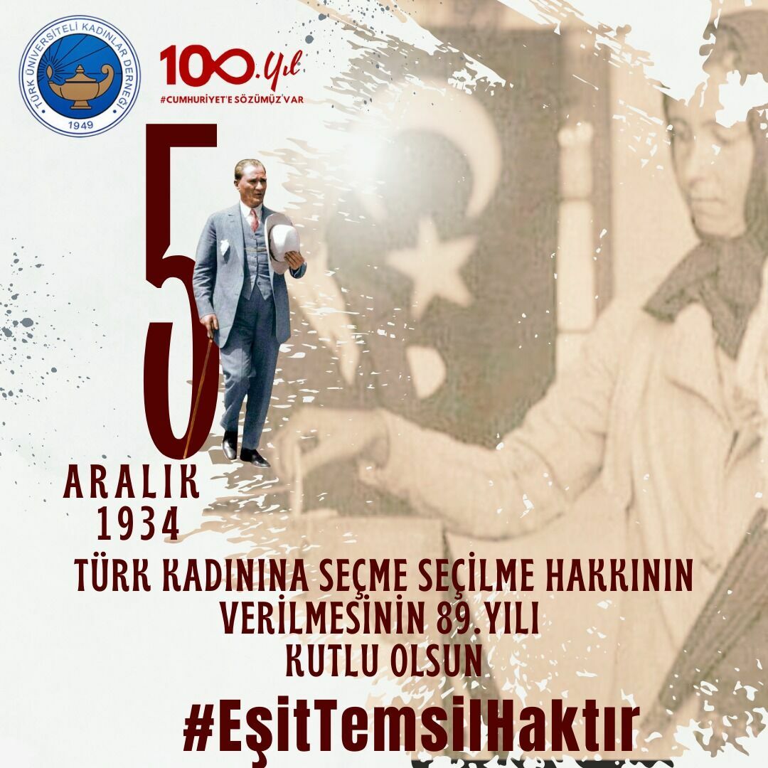 Ata’mızın öncülüğünde elde ettiğimiz seçme ve seçilme hakkının 89. Yıldönümünde, kadınların eşit siyasal temsilini sağlayacak gerçekçi ve samimi bir siyasal iradenin ortaya konulmasını, siyasetteeşit temsili sağlamaya yönelik özel önlemler alınmasını, bekliyor ve Anayasa’da, siyasi partiler yasasında ve parti tüzüklerinde, eşit temsil hakkımızı yaşama geçirmek üzere her türlü yasal düzenlemenin yapılmasını istiyoruz.