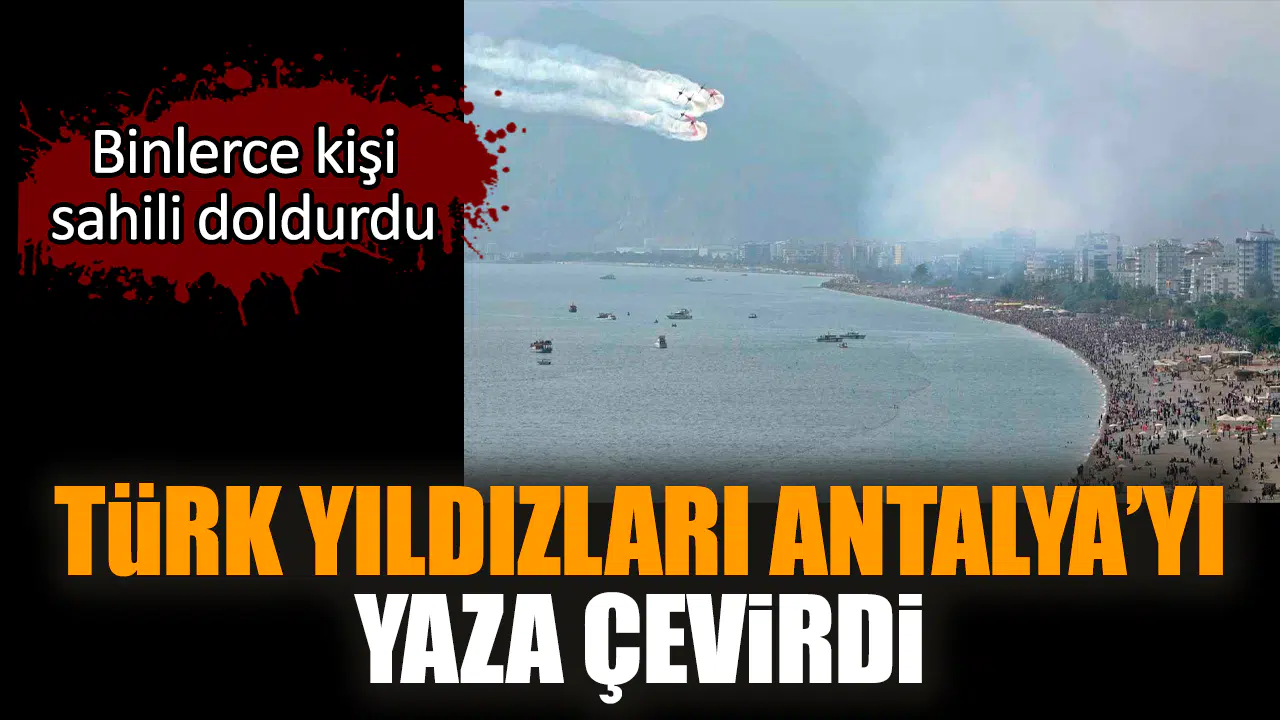 Gösteriye başlarken gökyüzüne 100 yazan Türk Yıldızları, binlerce Antalyalı ve turistin ilgisini çekti. Sahil ve falezler dolup taştı Gösteri uçuşu saat 13.00’da başladı ancak Antalyalılar ve turistler saatler öncesinden Konyaaltı Sahili’ni doldurdu.