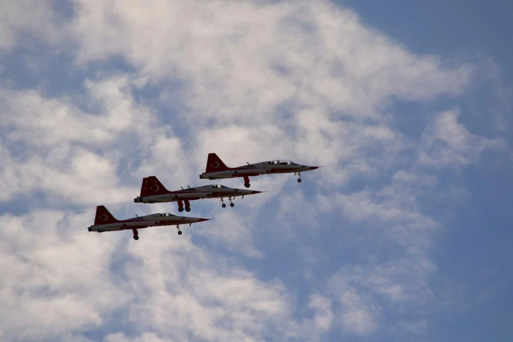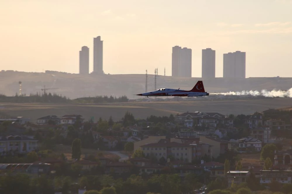 30 Ağustos Zafer Bayramı'nın coşkusunu yansıtan Türk Yıldızları, Ankara'nın Gölbaşı ilçesinde bulunan Mogan Gölü üzerinde de unutulmaz bir akrobasi gösterisi sergiledi. Gösteri, Gölbaşı'nın çeşitli noktalarından izlenebiliyordu ve vatandaşların ilgisi büyüktü. Seyirciler, heyecan dolu gösteriyi izlemek için araçlarının üstüne çıkarak nefes kesen manzarayı seyrettiler.